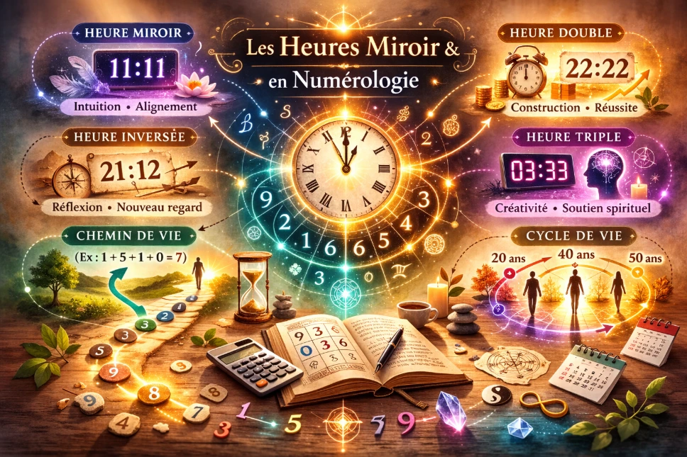 👉 Les heures miroir ⏰ illustrent quant à elles une autre dimension de cette approche symbolique : celle des synchronicités. Ces moments particuliers peuvent être perçus comme de petits rappels invitant à prendre du recul, à réfléchir ou simplement à observer ce qui se manifeste dans notre vie à un instant donné.